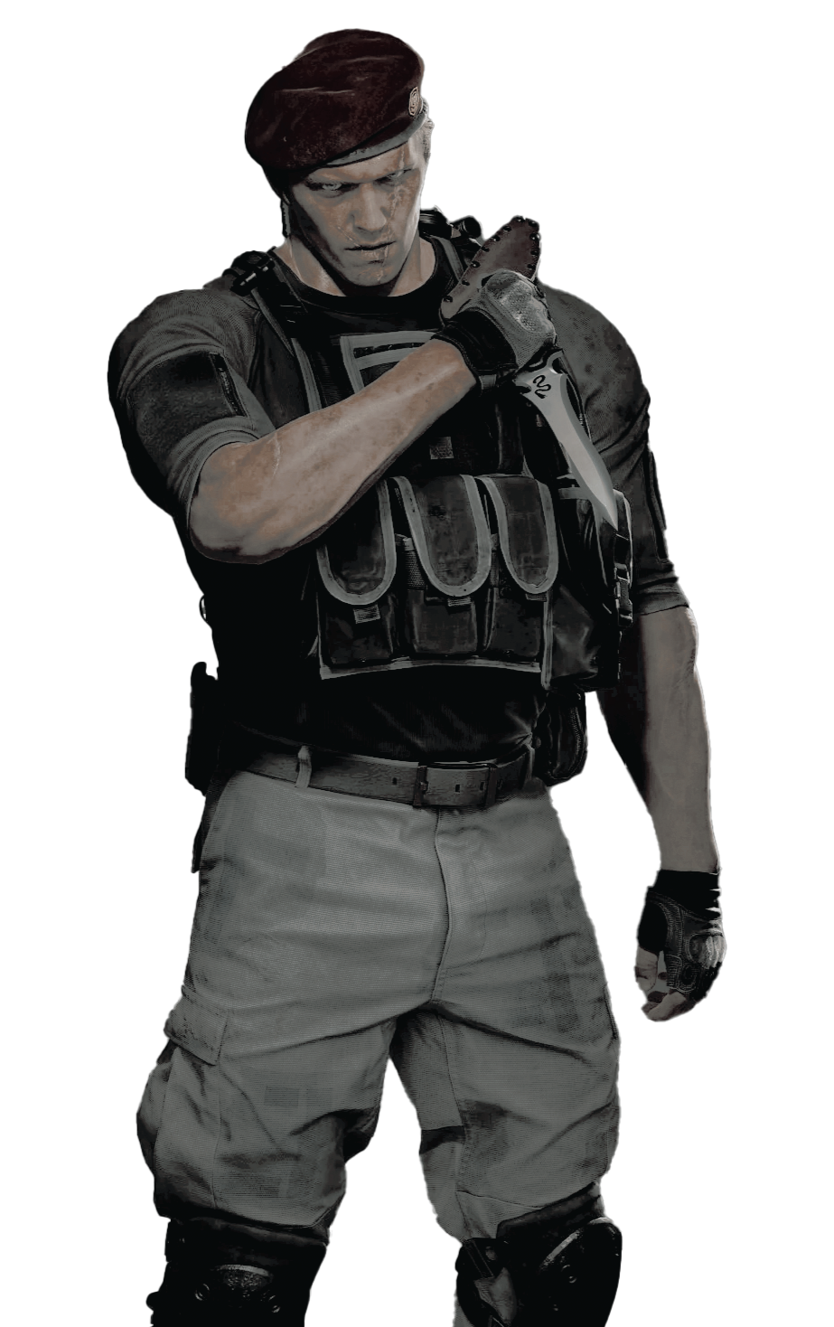 my canon takes from both original re4 & remakea successful soldier, krauser thrived in battle - discontent & bemused enough by 'ordinary life' as to work as a mercenary in his downtime. he was the sort who could never switch off from the thrill of a fight.mixing both the original & remake's canon - krauser worked as both a mentor and comrade to leon s kennedy, assisting the young agent in honing in skills whilst also partnering alongside him for operation javier.during the operation, many of krauser's men perished & he himself sustained a career ending arm injury. their resulting efforts were swept under the rug by the american government & krauser, weakened & no long able to fight - became resentful & obsessed with power.having seen what a virus could do & the power it could give a man - krauser began to keep himself ready & 'in-the-know' for any opportunities that could arise & bring power his way. it was with this mindset, he came across albert wesker.