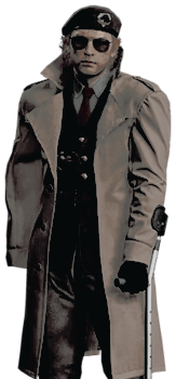 former russian military, volgin began working for the ubcs around the time of the raccoon city incident. initially 'one of the good guys' - when the shit hit the fan, he primarily looked out for himself.ultimately, this led to his 'demise' and though he survived the events of the city; he wasn't left without injury, having been caught in an explosion and knocked unconscious, finding himself awakening in the clutches of scientists. another experiment / bow to be made of him.